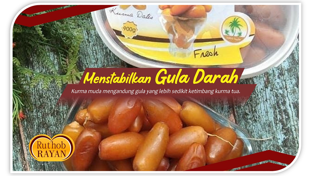 kurma jenis ini bisa jadi pilihan terbaik untuk membantu menstabilkan gula darah. Ruthob (kurma segar) mengandung gula yang lebih sedikit ketimbang Tamr (kurma kering).