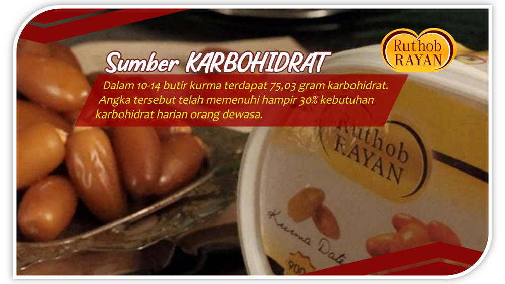 Kurma sejak zaman Nabi Muhammad SAW dijadikan sumber energi dan nutrisi. Bahkan saat berbuka puasa, disunahkan untuk mengonsumsi kurma. Hal ini karena zat fruktosa yang terkandung di dalamnya bisa diserap tubuh dengan baik untuk mengembalikan energi. Bukan hanya untuk mereka yang berpuasa, kurma juga sangat baik untuk dijadikan camilan saat hamil