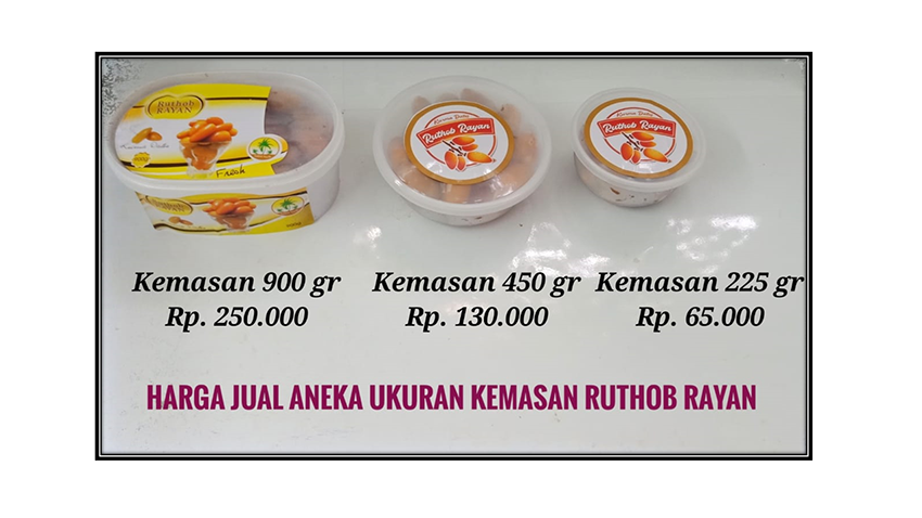 Ruthob rayan merupakan buah segar yang langsung dipetik dari pohon dan dipacking dari negara asalnya di Libya sampai ke Indonesia.